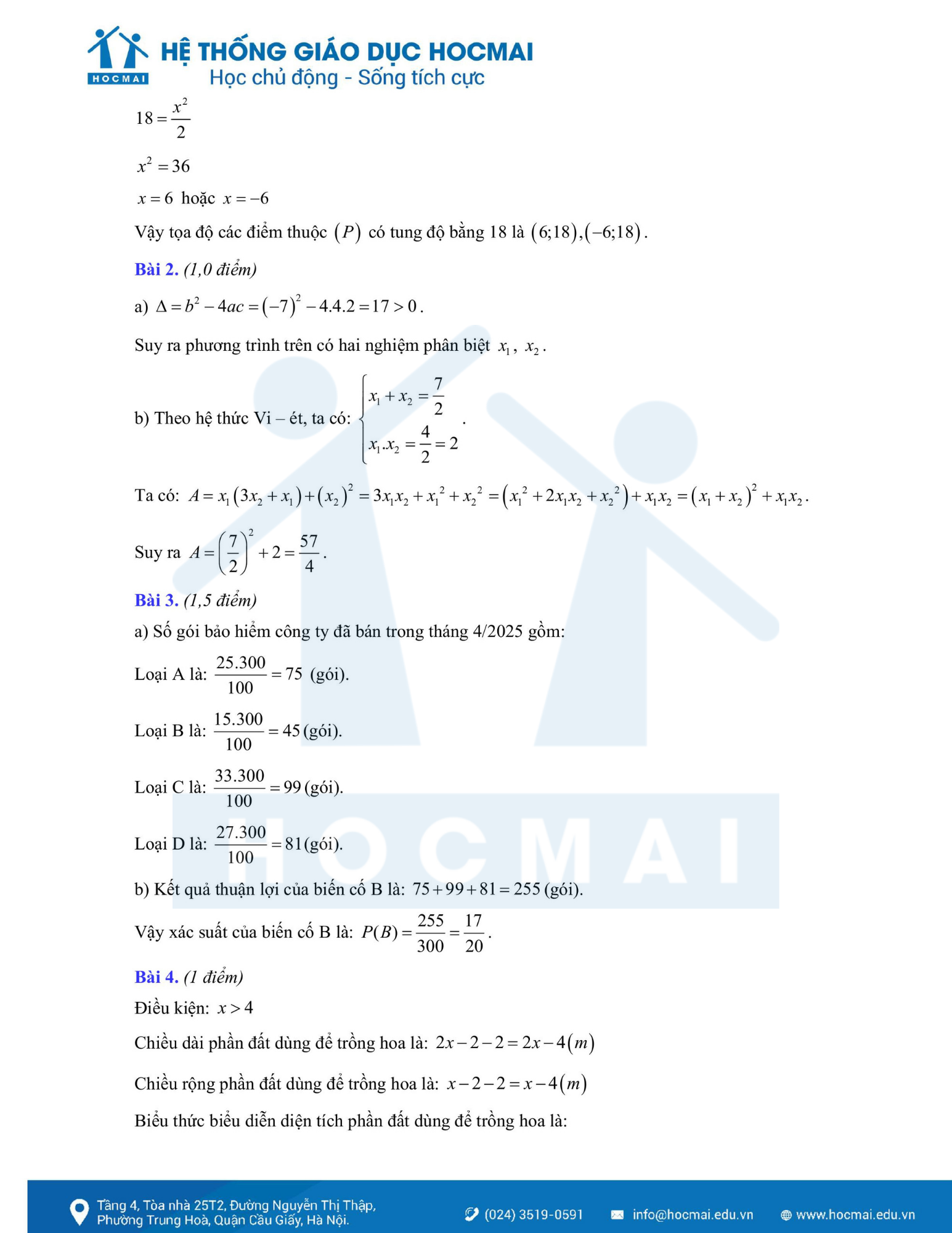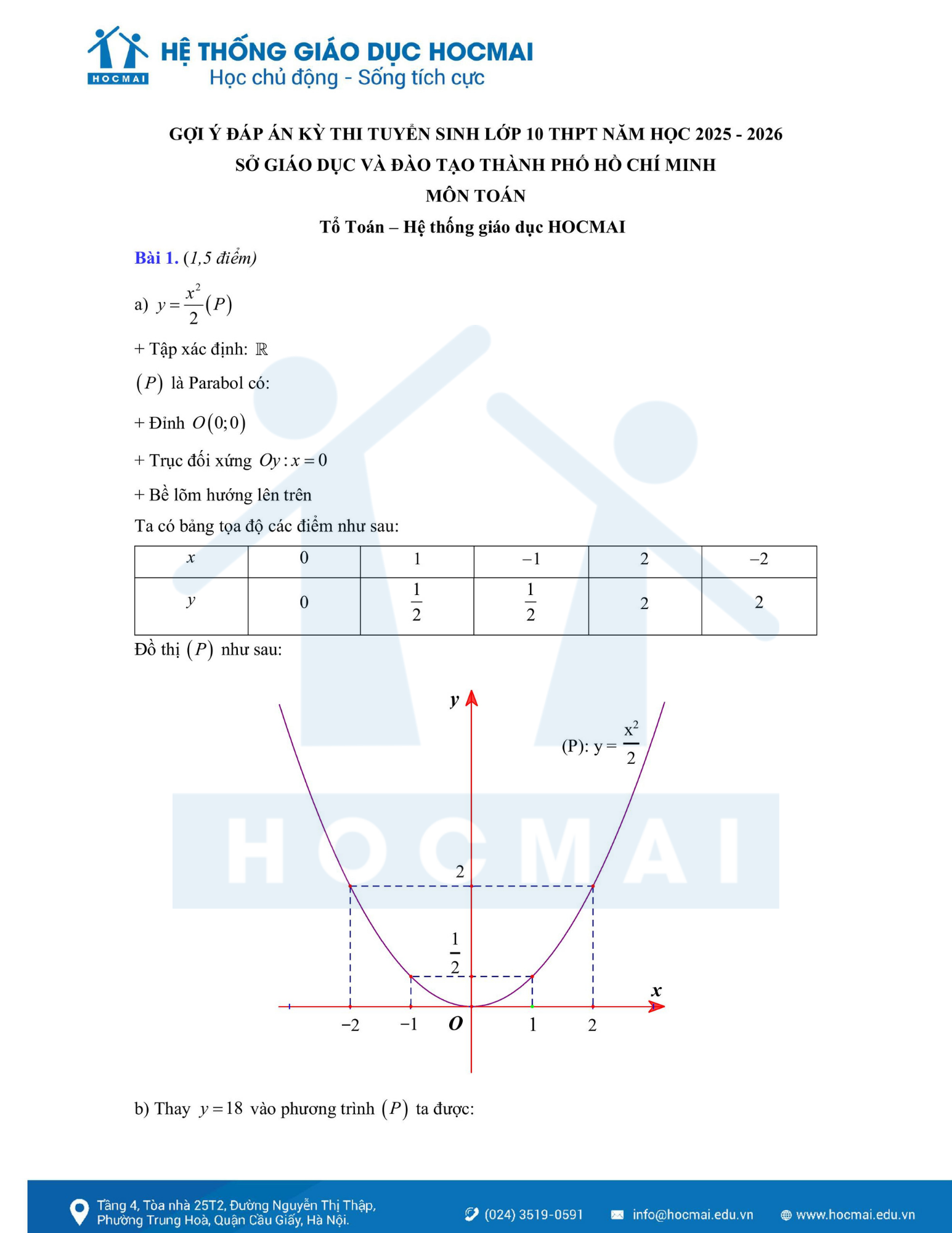 Đề thi tuyển sinh vào lớp 10 TP.HCM Năm 2025 – Môn Toán kèm lời giải chi tiết