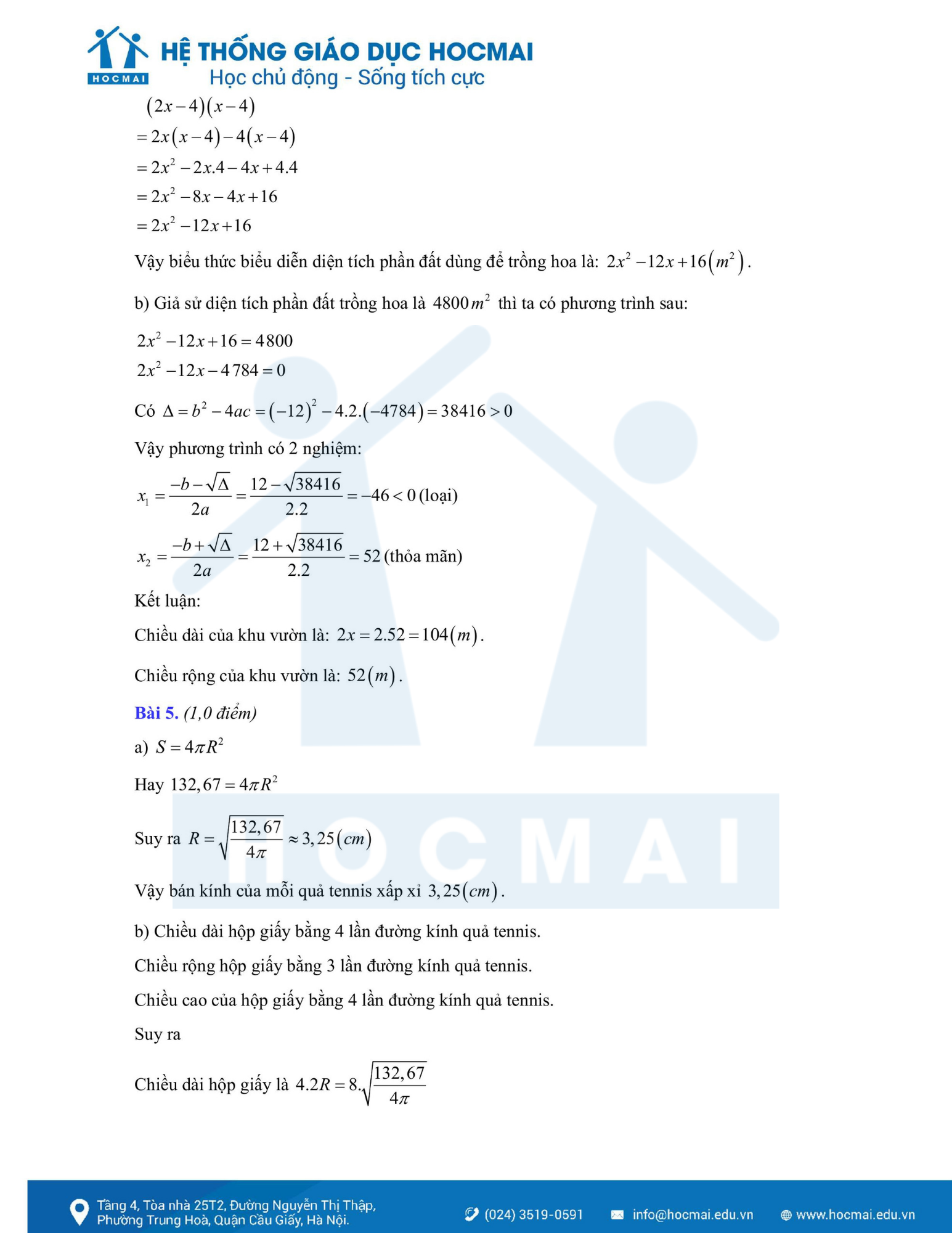 Bài 4: Là dạng câu hỏi ứng dụng phương trình giải bài toán thực tế và tương tự đề thi minh họa (khác nhau ở lệnh hỏi), thí sinh chỉ cần đọc kĩ và phân tích các dữ kiện của đề bài là có thể hoàn thành.