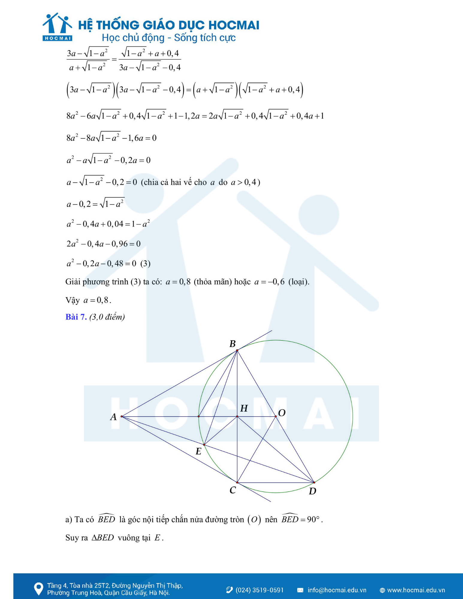 Bài hình học số 7 tiếp tục giữ cấu trúc quen thuộc, yêu cầu chứng minh hình học và tính toán bán kính đường tròn, diện tích tam giác – tạo điều kiện để học sinh khá giỏi phát huy khả năng lập luận hình học.
