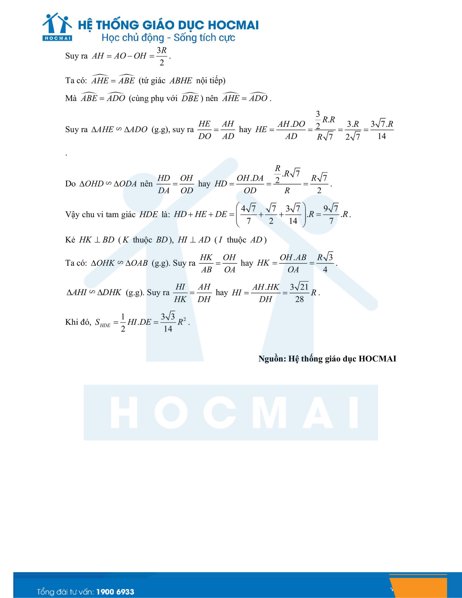 Bài 7: Đây là câu hỏi về hình học phẳng, là dạng bài quen thuộc liên quan đến tứ giác nội tiếp, các bài toán chứng minh đẳng thức và góc bằng nhau, tính toán các thông số liên quan đến chu vi đường tròn và diện tích tam giác. Ý c của bài toán là một trong những ý phân loại của đề nhưng cũng không quá đánh đố và làm khó các thí sinh.