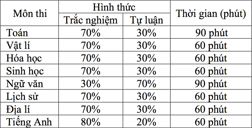 Ngữ văn | 90 phút | Tiếng Anh | 60 phút | |