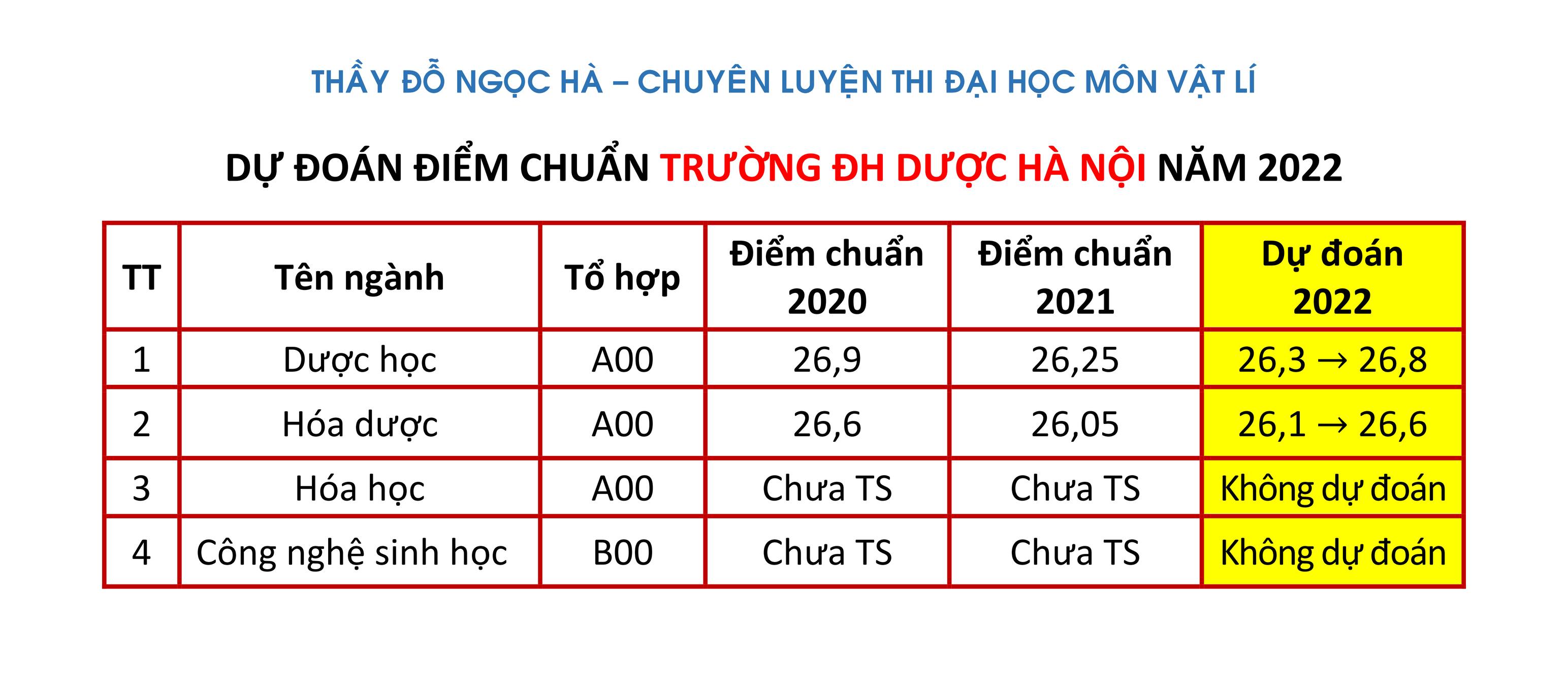 Sau đây là điểm chuẩn năm 2022 của Đại Học Dược Hà Nội do thầy Đỗ Ngọc Hà – Giáo viên môn Vật lí tại Hệ thống Giáo dục HOCMAI thực hiện: