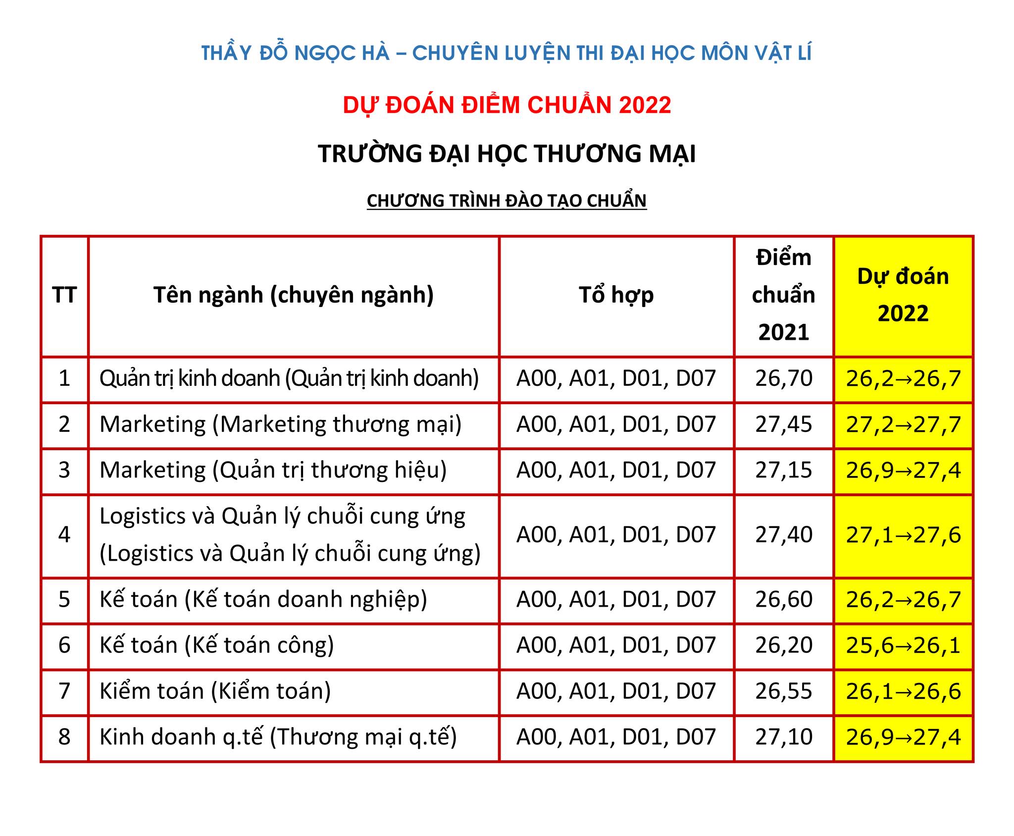 Theo PGS. TS Bùi Đức Triệu, Trưởng phòng Đào tạo, Trường Đại Học Kinh Tế Quốc Dân, điểm chuẩn của trường năm 2021 đã tương đối cao, các ngành thấp nhất có điểm chuẩn là 26,8 (trung bình mỗi môn trên 9 điểm), ngành cao nhất lấy 28,3 điểm. Vì vậy, dự báo điểm chuẩn năm 2022 sẽ không cao hơn năm 2021 quá nhiều.