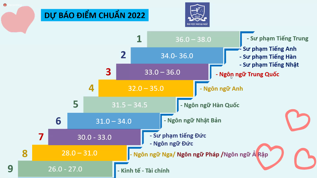 Sau đây là dự báo điểm chuẩn năm 2022 của Đại Học Ngoại Ngữ – Đại Học Quốc Gia Hà Nội (ULIS):