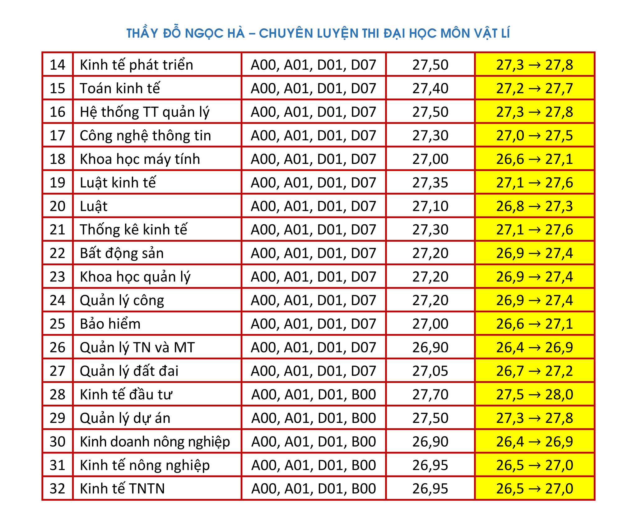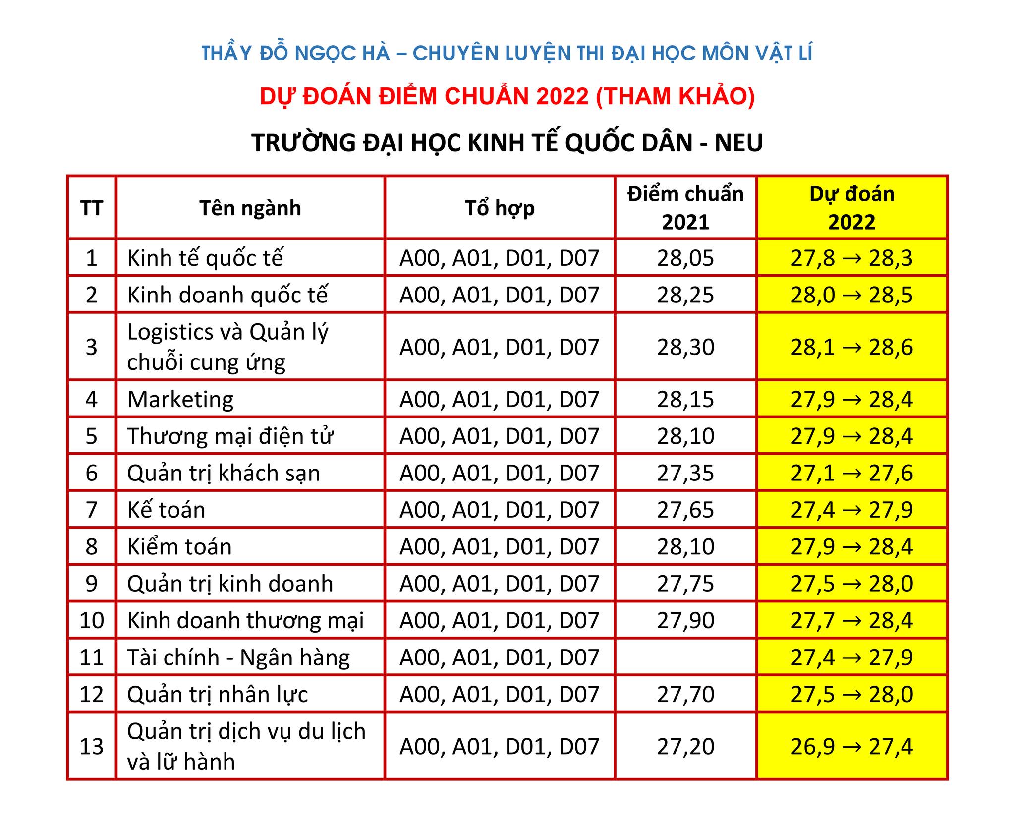 Xem thêm: Điểm chuẩn trường Đại Học Kinh Tế Quốc Dân