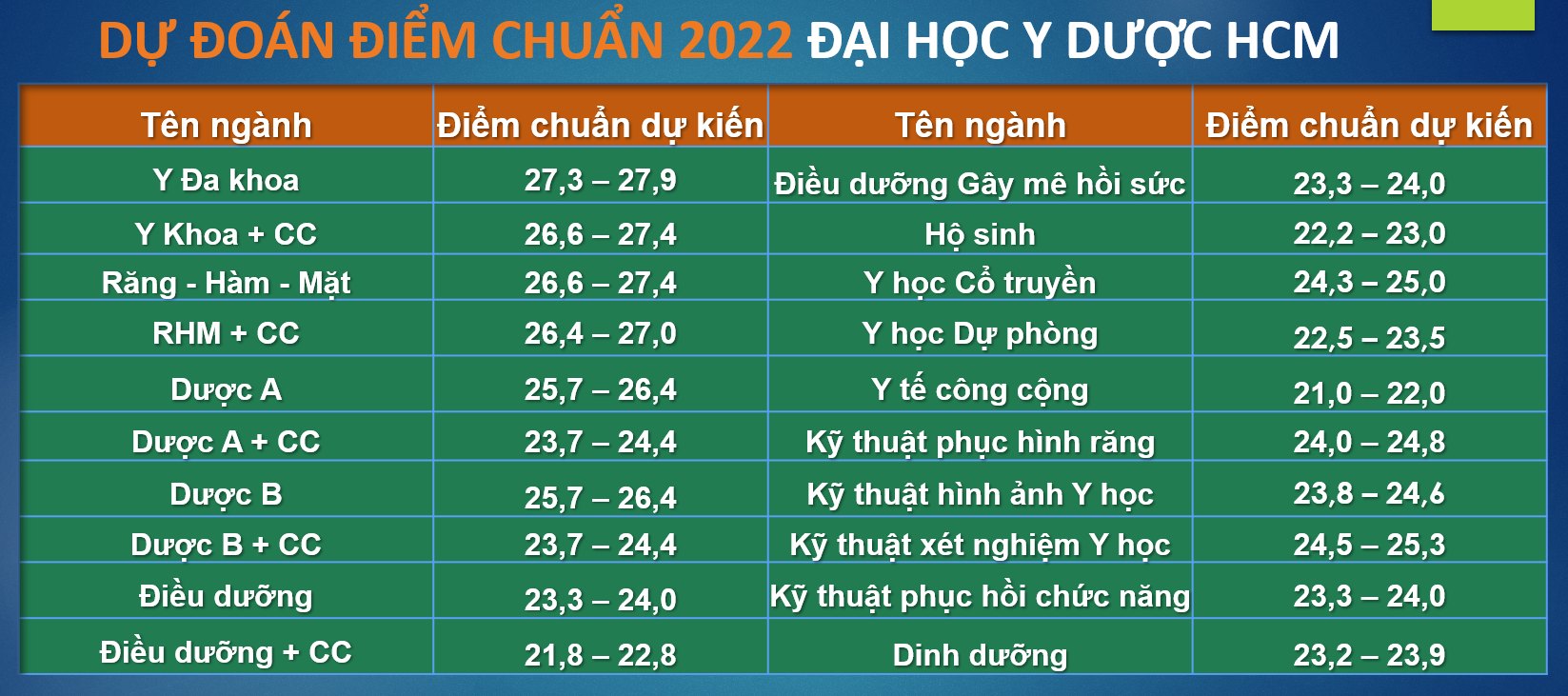 Xem thêm: Điểm chuẩn Đại Học Y Dược TPHCM