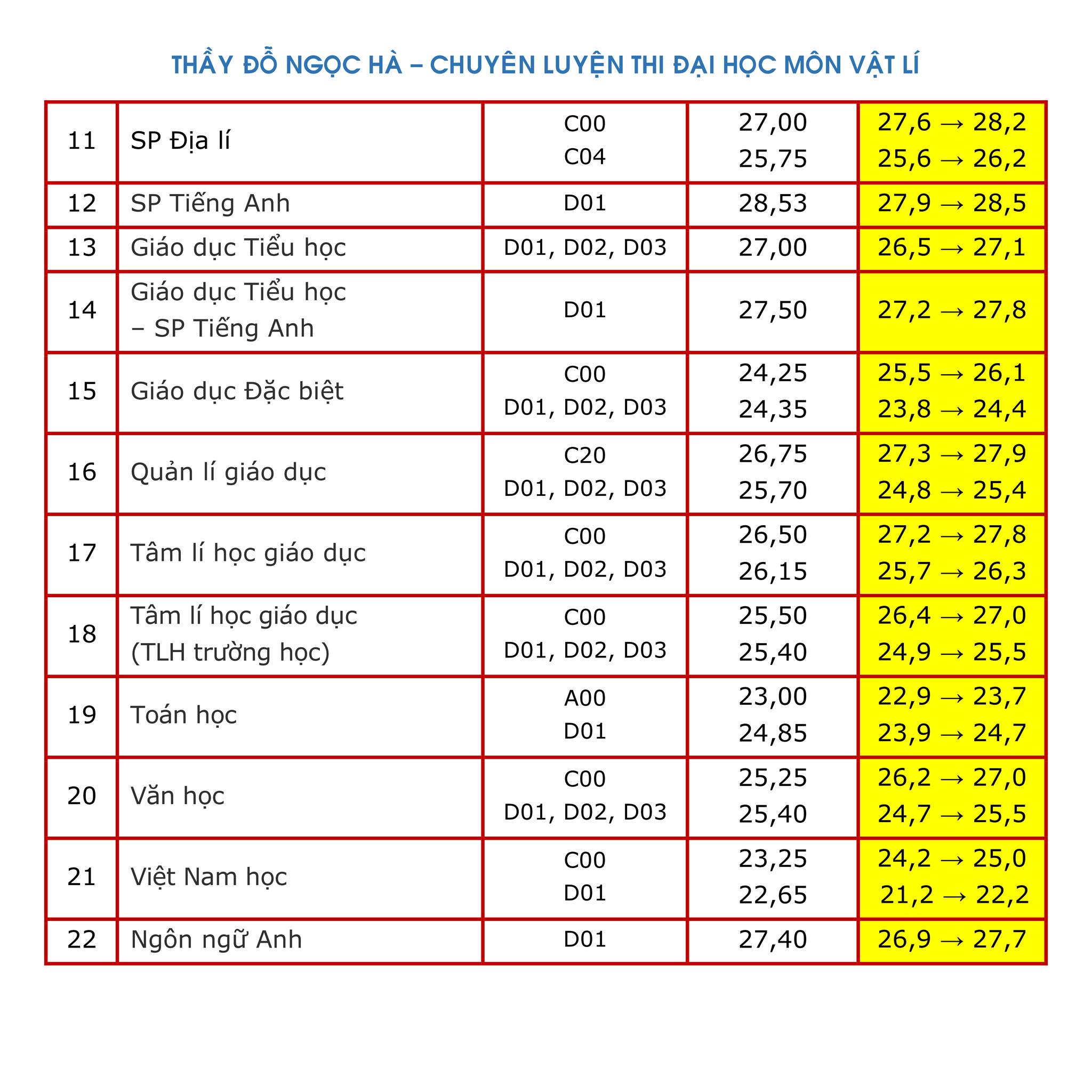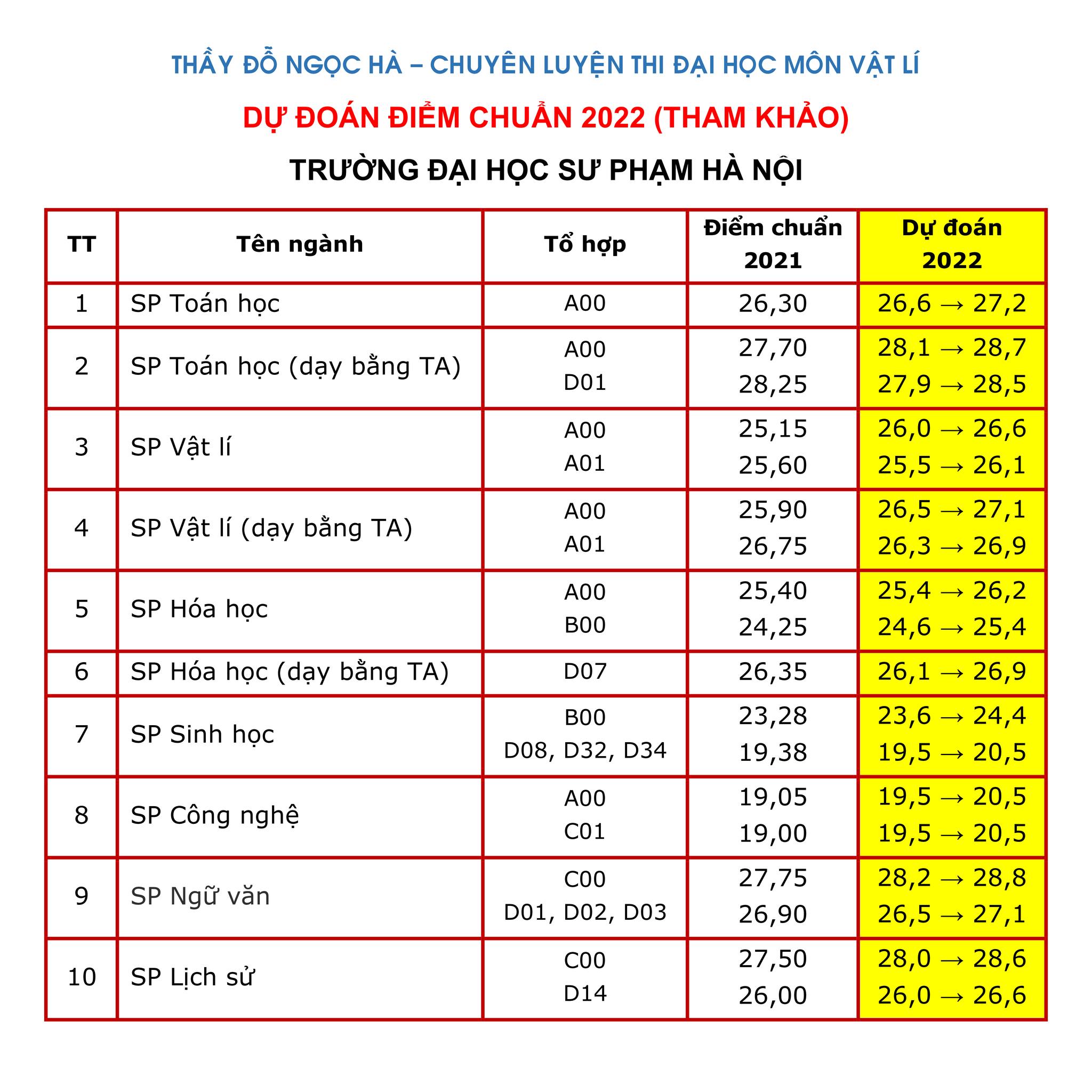 Sau đây là điểm chuẩn năm 2022 của Đại Học Sư Phạm Hà Nội do thầy Đỗ Ngọc Hà – Giáo viên môn Vật lí tại Hệ thống Giáo dục HOCMAI thực hiện: