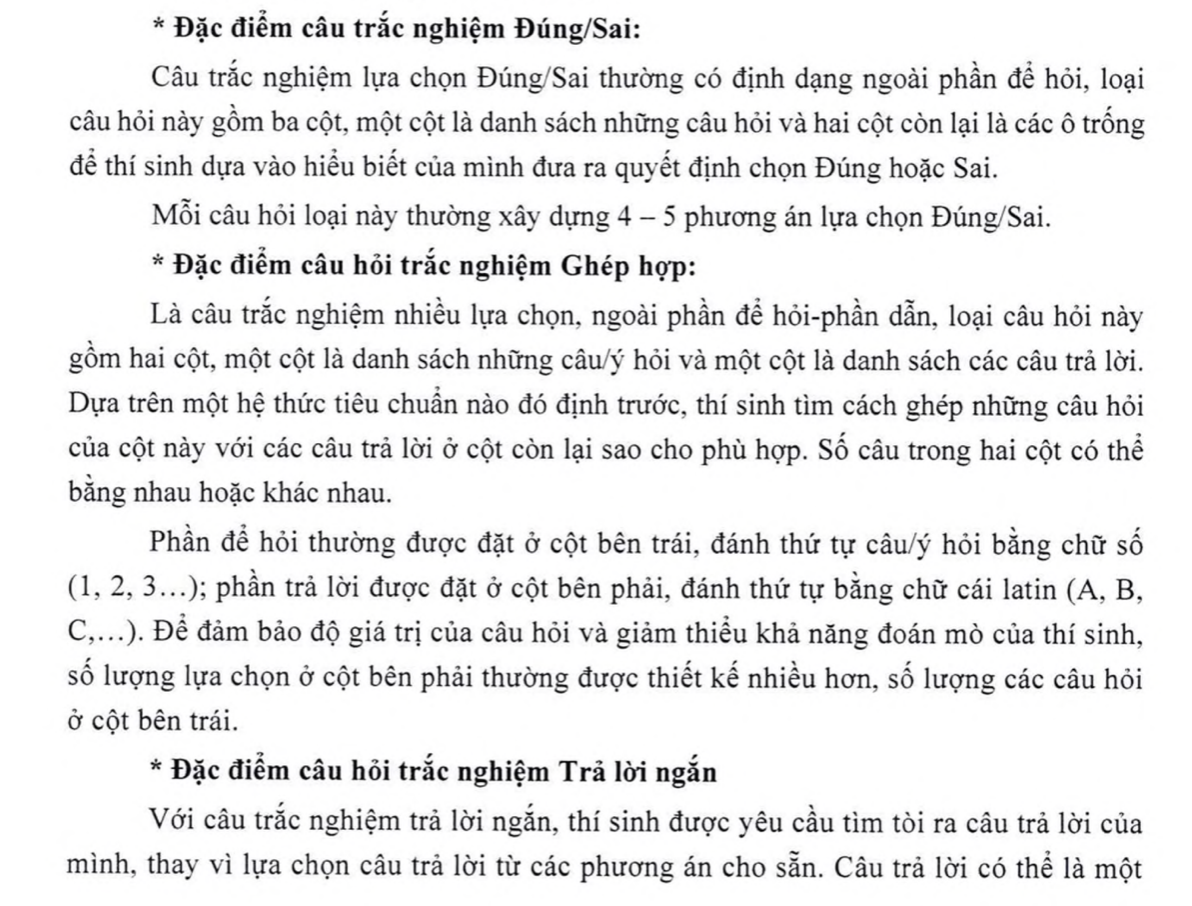 Đề thi gồm 3 dạng câu hỏi: