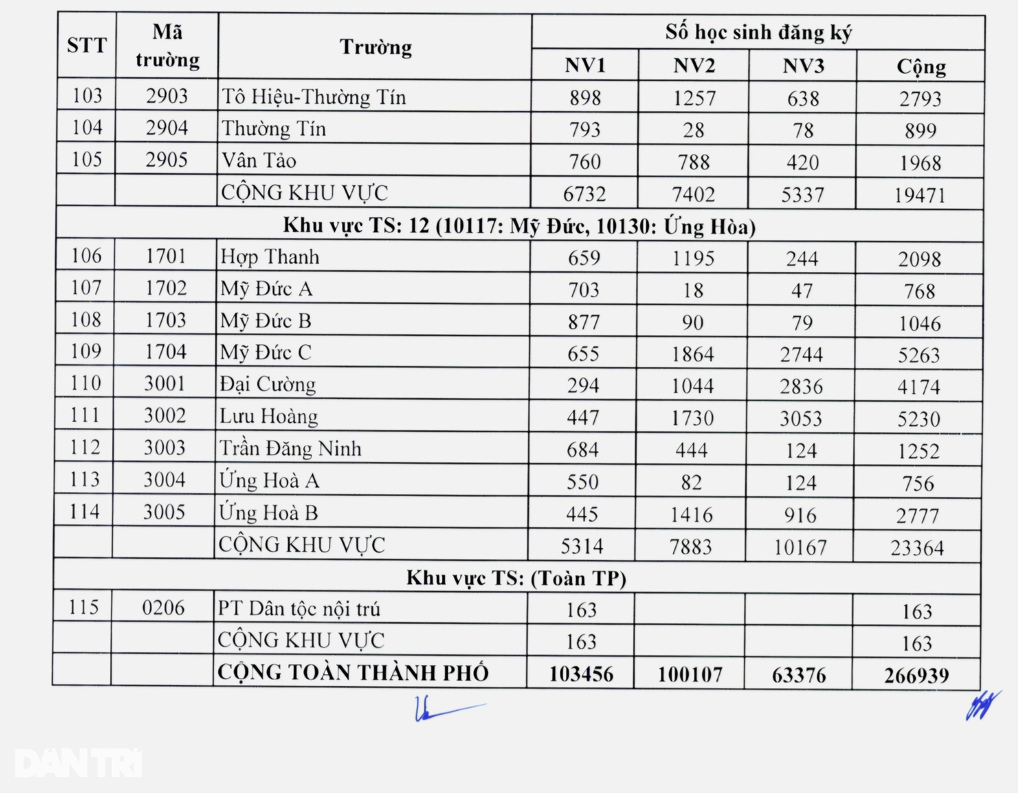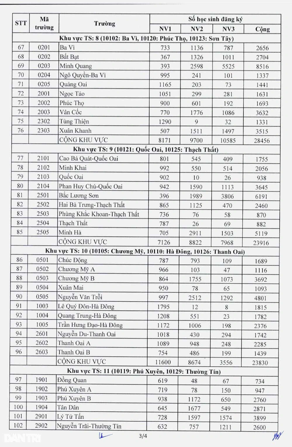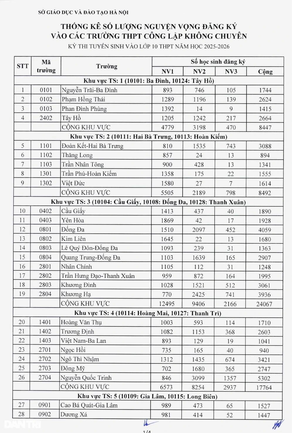 Cụ thể số lượng nguyện vọng đăng ký vào lớp 10 các trường THPT năm nay của Hà Nội như sau: