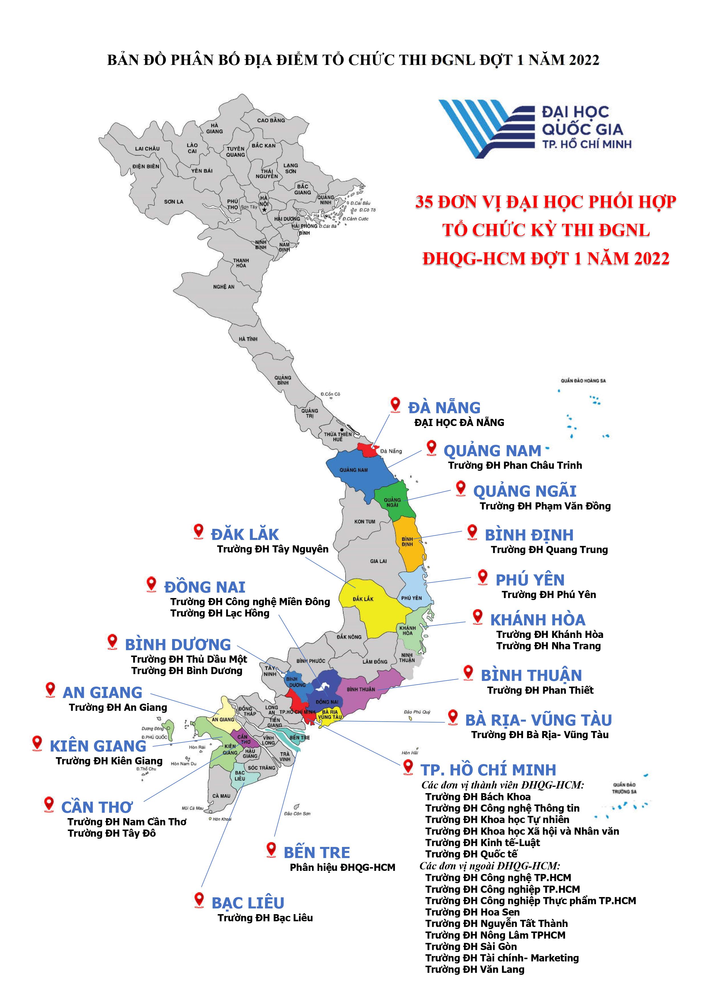 Các đơn vị tổ chức kỳ thi ĐGNL của ĐHQG TP.HCM đợt 1 năm 2022