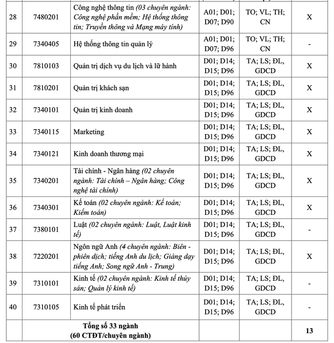 – XHNV: nhóm ngành kinh tế, kế toán, quản lý; xã hội nhân văn, dịch vụ.