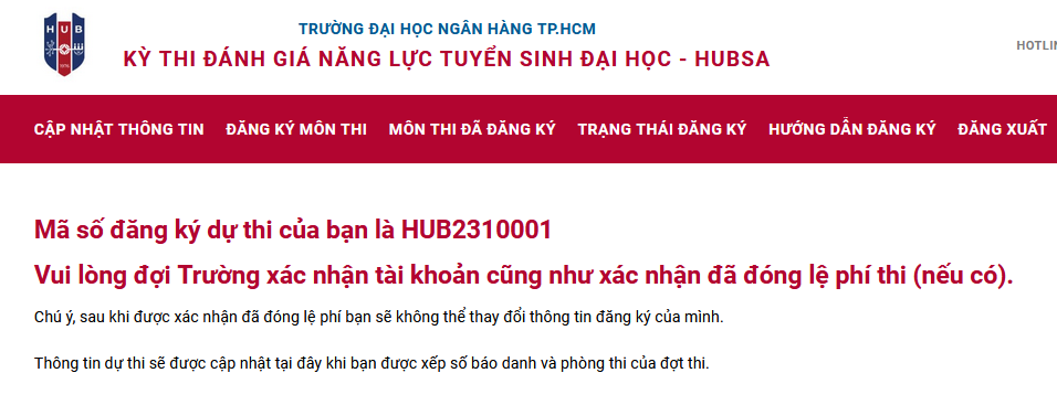Sau khi đăng ký, xác nhận và đóng lệ phí, cán bộ hỗ trợ sẽ kiểm tra thông tin chuyển khoản và kích hoạt trạng thái cho thí sinh. Thí sinh có thể truy cập Trạng thái đăng ký để kiểm tra trạng thái của mình trên hệ thống.