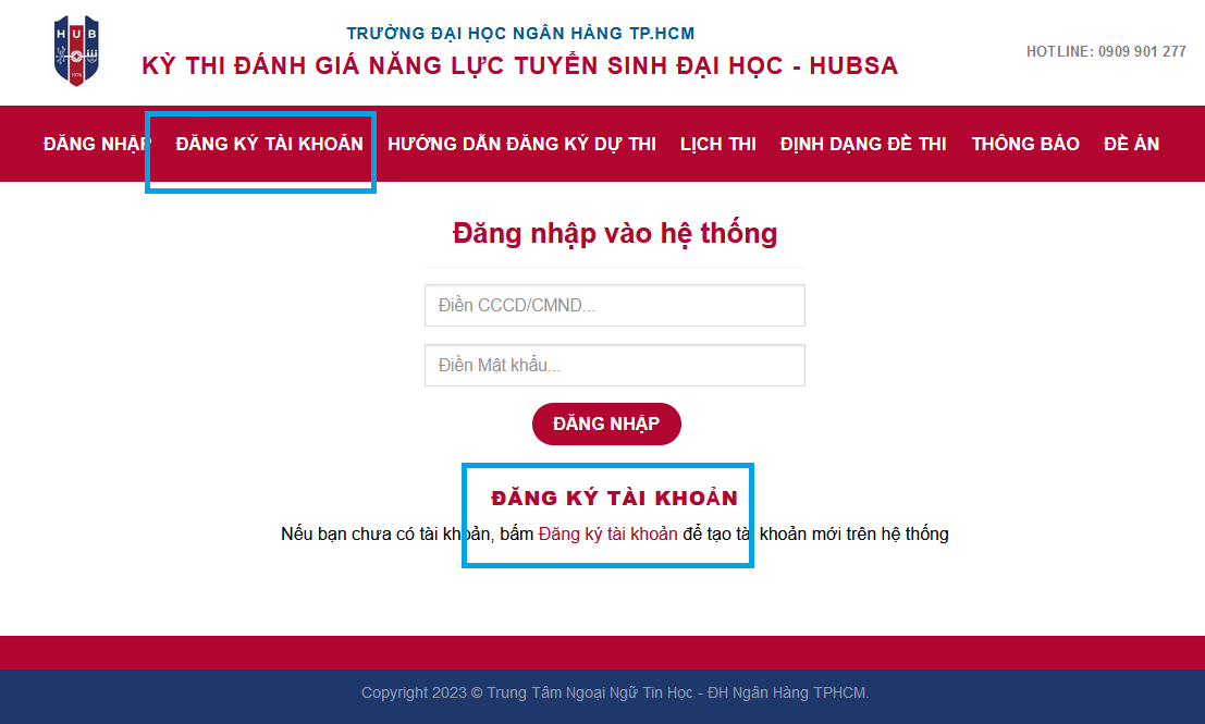 Nếu chưa có tài khoản, thí sinh nhấp vào “Đăng ký tài khoản”.