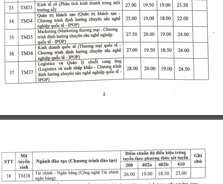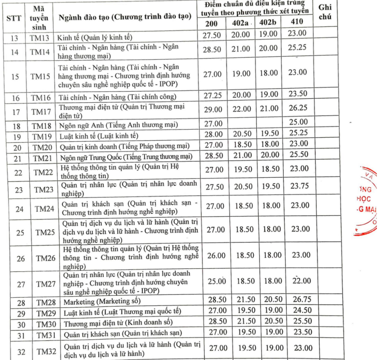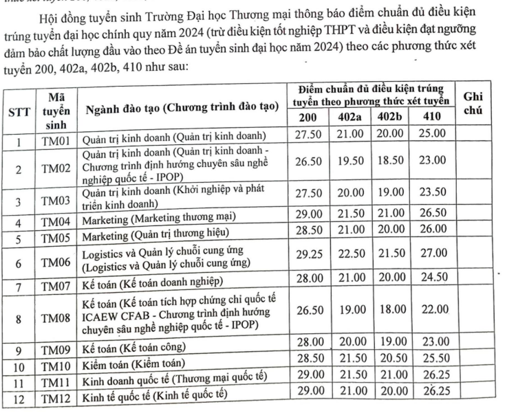 Điểm chuẩn các phương thức xét tuyển sớm của Đại học Thương mại 2024 cụ thể như sau: