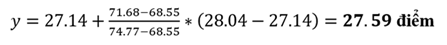 Áp dụng công thức nội suy tính điểm chuẩn tương đương đối với điểm thi tốt nghiệp THPT y từ điểm chuẩn ĐGTD x = 71.68 sẽ được tính như sau:
