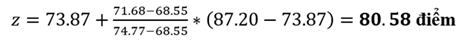 Áp dụng công thức nội suy tính điểm chuẩn tương đương đối với điểm XTTN diện 1.3 z từ điểm chuẩn ĐGTD x = 71.68 sẽ được tính như sau:
