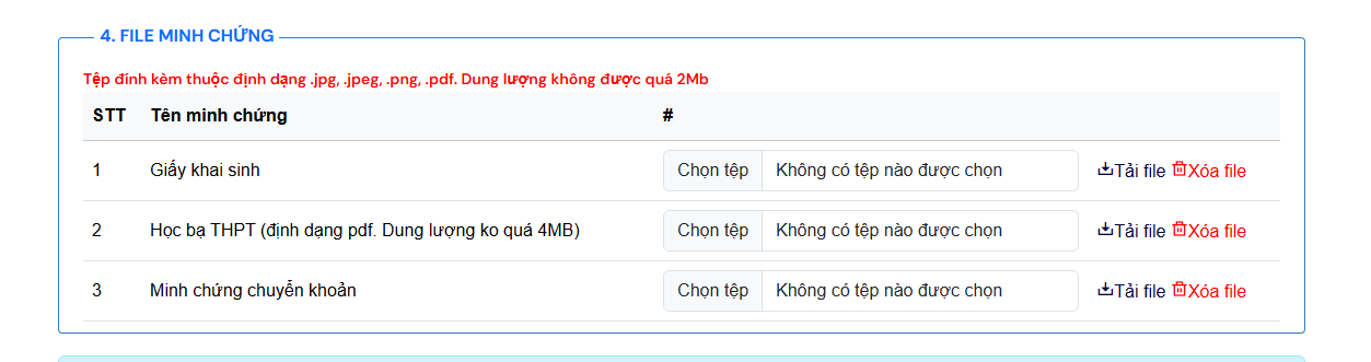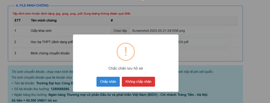 + Học bạ THPT (bản sao công chúng);