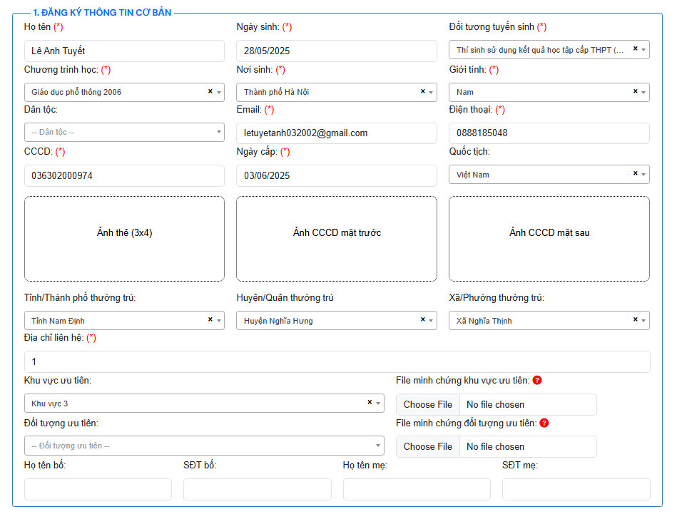 + Giấy chứng nhận ưu tiên (nếu có);