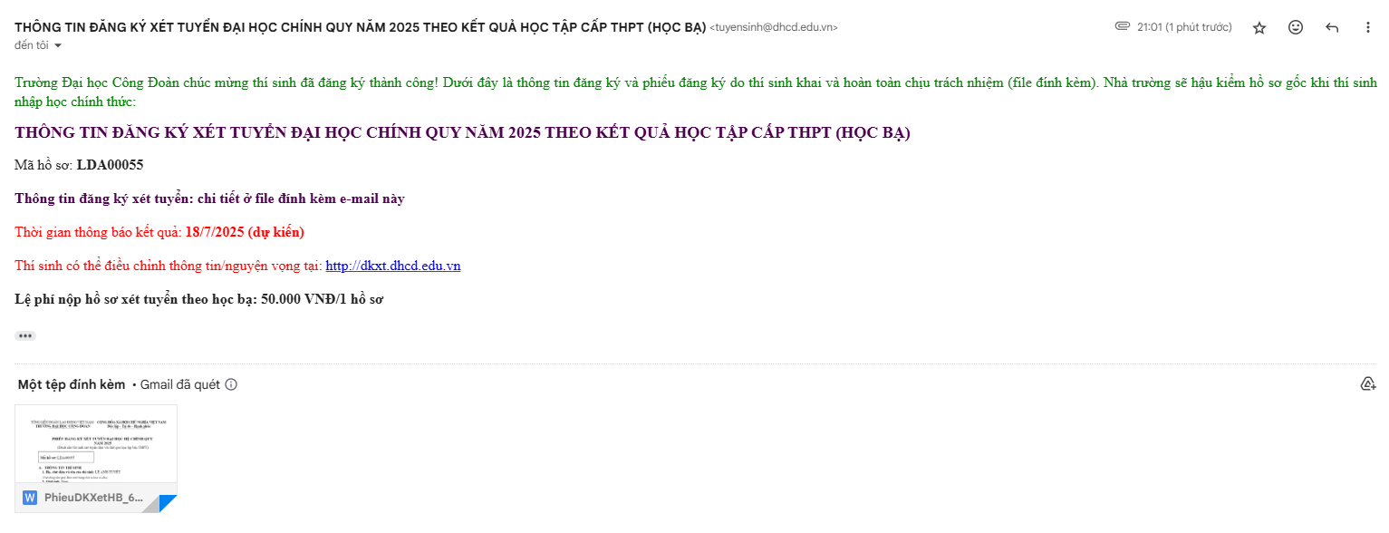 + Phiếu đăng ký xét tuyển thẳng (theo mẫu của Bộ GD&ĐT);