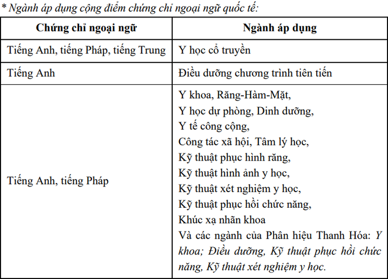 – Trường Đại học Y Hà Nội có 02 loại điểm cộng sau: